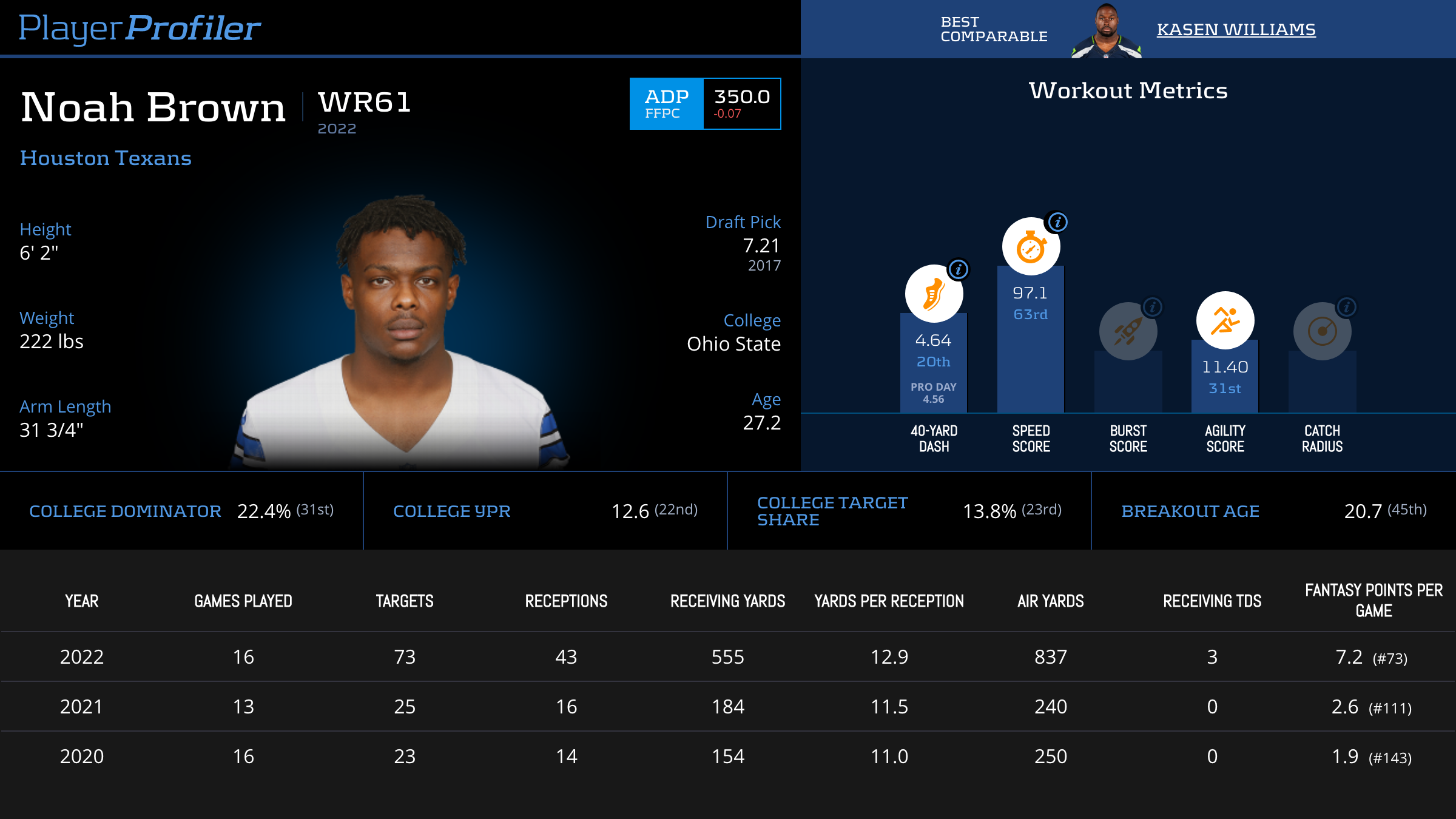 Noah Brown Fantasy 2025. Wed, jul 10, 2024, 1:29 pm edt · 2 min read. How many fantasy points can you expect him to score this year?